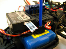underneath the combo ESC/receiver unit via a pivoting plate with