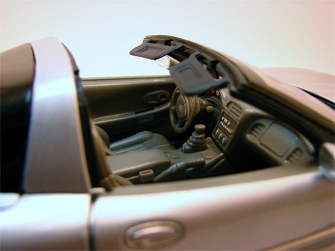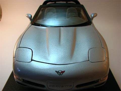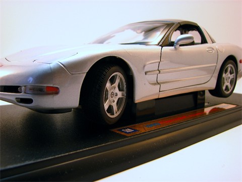 The 1999 edition of the 1:18 Chevrolet Corvette from Welly looked good coming out of the box. The exterior detail and silver and black color scheme makes this a sharp looking car. The hard top came off easily, althogh I would not recommedn taking it on and off repeatdly as the plastic pins are very fragile, and added a nice look to this car. The large wheels and over=sized brake rotors look nice too as the rims have a dull finish and the rotors are highly polished chrome.