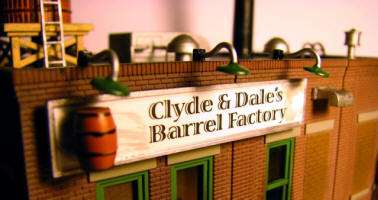 Woodland Scenic has long been known for their wonderful products that help make a train lay out or any panoramic endeavor appear more realistic. They have now produced a factory building that is occupied by the Clyde & Dale Barrel Company